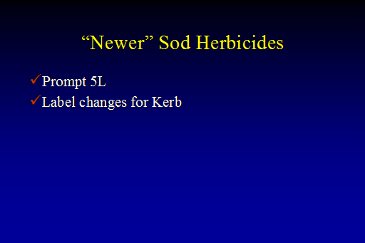 “Newer” Sod Herbicides<BR>Prompt 5L <BR>Label changes for Kerb<BR>