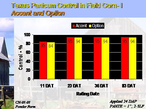 Texas Panicum Control in Field Corn- I Accent and Option<BR>CN-03-03