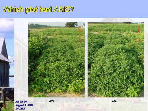 Which plot had AMS?<BR>PE-08-04 <BR>August 3, 2004 <BR>54 DAT<BR>403<BR>404<BR>