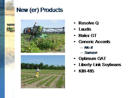 New (er) Products<BR>Resolve Q <BR>Laudis <BR>Halex GT <BR>Generic Accents <BR>Nic-It <BR>Samson <BR>Optimum GAT <BR>Liberty-Link Soybeans <BR>KIH-485 <BR>