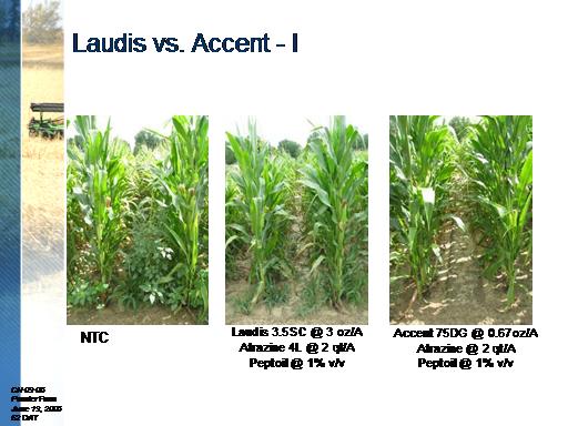 Laudis vs. Accent - I<BR>CN-03-08 <BR>Ponder Farm <BR>June 13, 2008 <BR>52 DAT <BR>NTC<BR>Laudis 3.5SC @ 3 oz/A <BR>Atrazine 4L @ 2 qt/A <BR>Peptoil @ 1% v/v<BR>Accent 75DG @ 0.67oz/A <BR>Atrazine @ 2 qt/A <BR>Peptoil @ 1% v/v<BR>