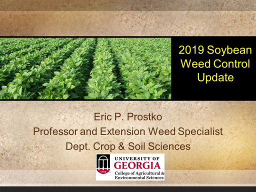 2019 Soybean Weed Control Update<BR>Eric P. Prostko <BR>Professor and Extension Weed Specialist <BR>Dept. Crop & Soil Sciences<BR>