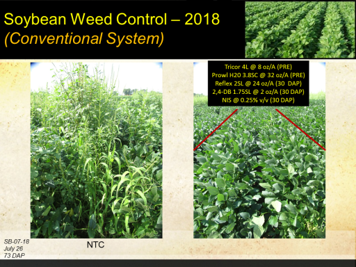 Soybean Weed Control – 2018 (Conventional System)<BR>SB-07-18 <BR>July 26 <BR>73 DAP<BR>NTC<BR>