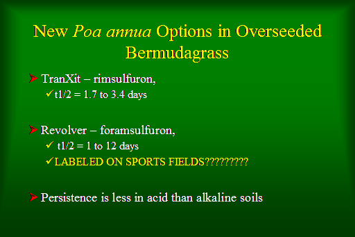 New Poa annua Options in Overseeded Bermudagrass<BR>TranXit – rimsulfuron,