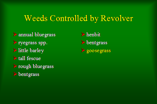 Weeds Controlled by Revolver<BR>annual bluegrass