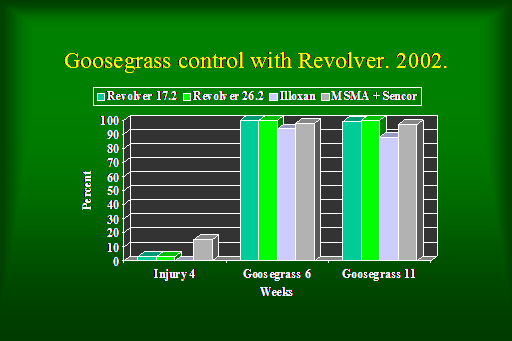 Goosegrass control with Revolver. 2002.<BR>