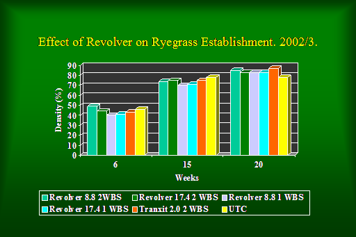 Effect of Revolver on Ryegrass Establishment. 2002/3.<BR>
