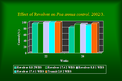 Effect of Revolver on Poa annua control. 2002/3.<BR>