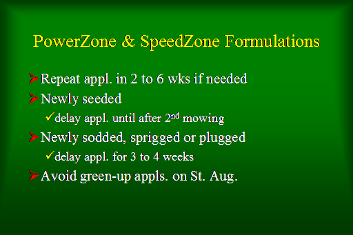 PowerZone & SpeedZone Formulations<BR>Repeat appl. in 2 to 6 wks if needed