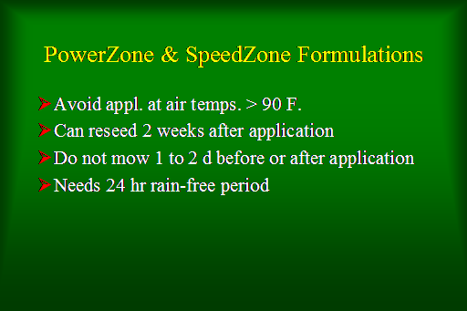 PowerZone & SpeedZone Formulations<BR>Avoid appl. at air temps. > 90 F.