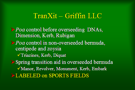 TranXit – Griffin LLC<BR>Poa control before overseeding  DNAs, Dimension, Kerb, Rubigan