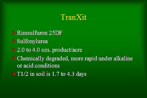 <BR>T1/2 in soil is 1.7 to 4.3 days