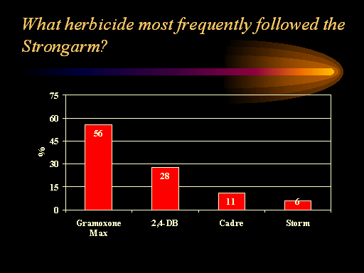 <H1>What herbicide most frequently followed the Strongarm?</H1>