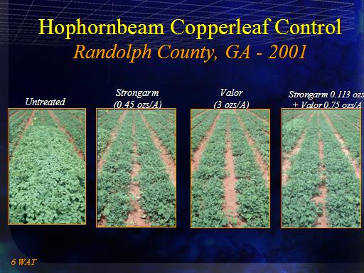 Hophornbeam Copperleaf ControlRandolph County, GA - 2001<BR>6 WAT<BR>Untreated<BR>Strongarm
