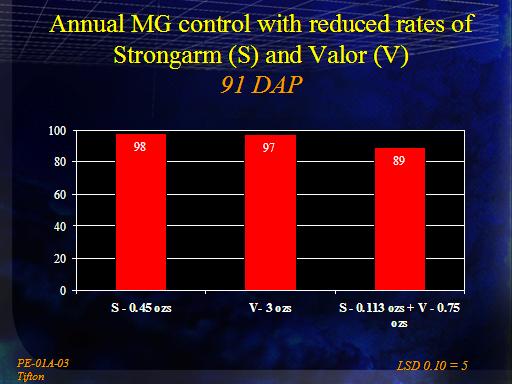 Annual MG control with reduced rates of Strongarm (S) and Valor (V)91 DAP<BR>PE-01A-03