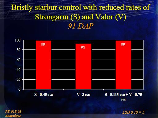 Bristly starbur control with reduced rates of Strongarm (S) and Valor (V)91 DAP<BR>PE-01B-03