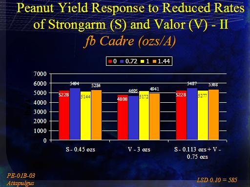 Peanut Yield Response to Reduced Rates of Strongarm (S) and Valor (V) - IIfb Cadre (ozs/A)<BR>PE-01B-03