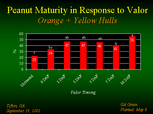 Peanut Maturity in Response to ValorOrange + Yellow Hulls<BR>Tifton, GA