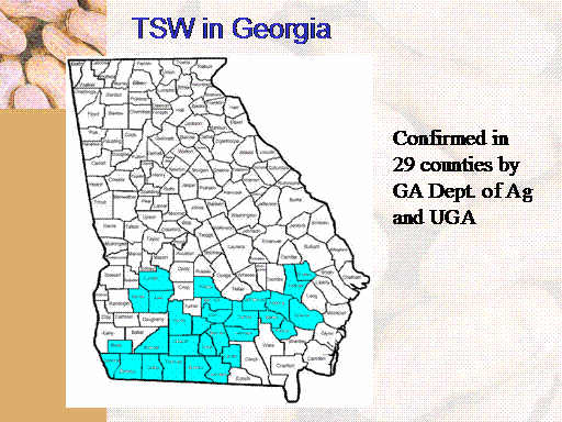 TSW in Georgia<BR>Confirmed in <BR>29 counties by <BR>GA Dept. of Ag  <BR>and UGA<BR>
