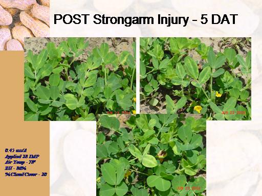 POST Strongarm Injury - 5 DAT <BR>0.45 ozs/A <BR>Applied 28 DAP <BR>Air Temp - 780 <BR>RH - 86% <BR>% Cloud Cover - 20<BR>