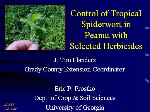 Control of Tropical Spiderwort in Peanut with Selected Herbicides<BR>J. Tim Flanders