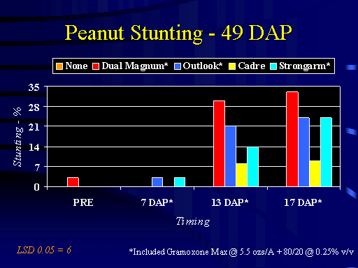 Peanut Stunting - 49 DAP<BR>LSD 0.05 = 6<BR>*Included Gramoxone Max @ 5.5 ozs/A + 80/20 @ 0.25% v/v<BR>
