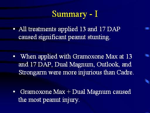 Summary - I<BR>All treatments applied 13 and 17 DAP caused significant peanut stunting.