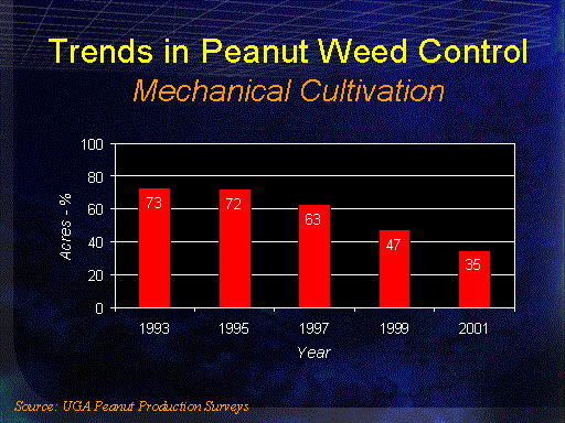 Trends in Peanut Weed ControlMechanical Cultivation<BR>Source: UGA Peanut Production Surveys<BR>