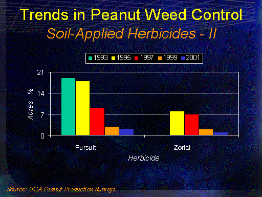 Trends in Peanut Weed ControlSoil-Applied Herbicides - II<BR>Source: UGA Peanut Production Surveys<BR>