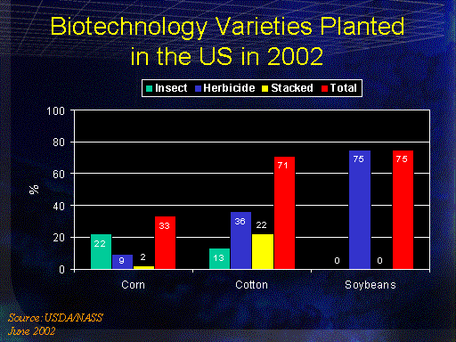 Biotechnology Varieties Planted in the US in 2002<BR>Source:USDA/NASS