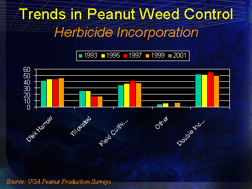 Trends in Peanut Weed ControlHerbicide Incorporation<BR>Source: UGA Peanut Production Surveys<BR>