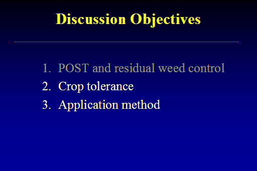 Discussion Objectives<BR>POST and residual weed control