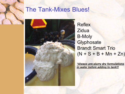 The Tank-Mixes Blues!<BR>Reflex <BR>Zidua <BR>B-Moly <BR>Glyphosate <BR>Brandt Smart Trio <BR>(N + S + B + Mn + Zn)<BR>*Always pre-slurry dry formulations <BR>in water before adding to tank!!!<BR>