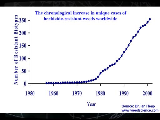 Notes: Since groundsel was first discovered to be resistant to the triazine herbicides in the latter 1960's, there has been a steady increase in the number of herbicide resistant weeds worldwide. A significant increase in the number of resistant weed biotypes has occurred since the 1990's when the trend in herbicide discovery was to develop low use rate, environmentally friendly herbicides with single sites of action. |