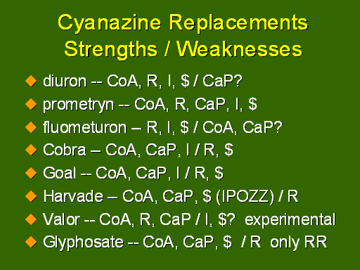 <H1>Cyanazine ReplacementsStrengths / Weaknesses</H1>