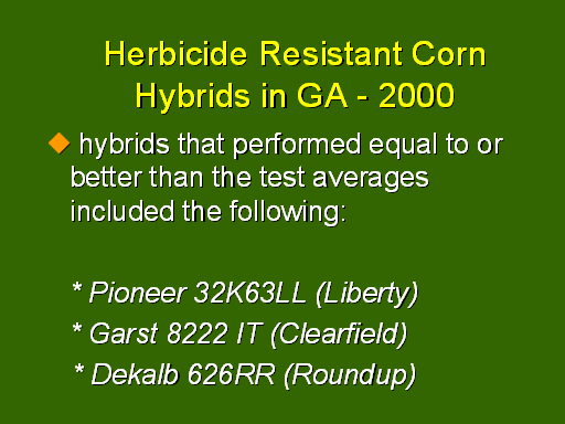 <H1>Herbicide Resistant Corn Hybrids in GA - 2000</H1>