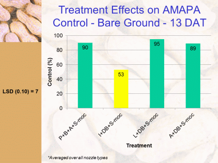 Treatment Effects on AMAPA Control - Bare Ground - 13 DAT<BR>LSD (0.10) = 7 <BR>*Averaged over all nozzle types<BR>