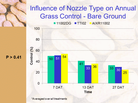 Influence of Nozzle Type on Annual Grass Control - Bare Ground <BR>P > 0.41<BR>*Averaged over all treatments<BR>