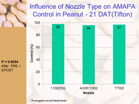 Influence of Nozzle Type on AMAPA Control in Peanut - 21 DAT(Tifton)<BR>P = 0.6254 <BR>After  PRE + EPOST<BR>*Averaged over all treatments<BR>
