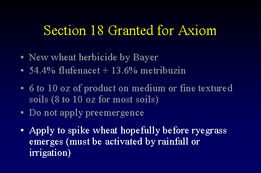Section 18 Granted for Axiom<BR>New wheat herbicide by Bayer