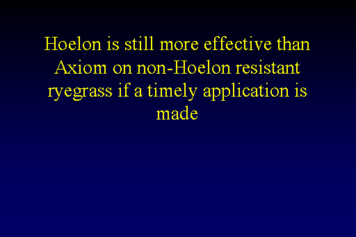 Hoelon is still more effective than Axiom on non-Hoelon resistant ryegrass if a timely application is made<BR>