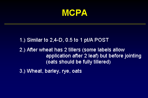 <BR>	1.) Similar to 2,4-D, 0.5 to 1 pt/A POST