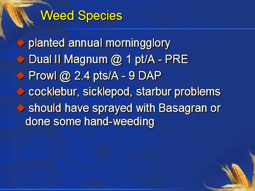 <BR> should have sprayed with Basagran or done some hand-weeding<BR>