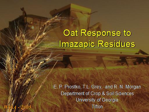 Oat Response to  Imazapic Residues<BR>E. P. Prostko, T.L. Grey,  and R. N. Morgan <BR>Department of Crop & Soil Sciences <BR>University of Georgia <BR>Tifton<BR>WSSA - 2005<BR>