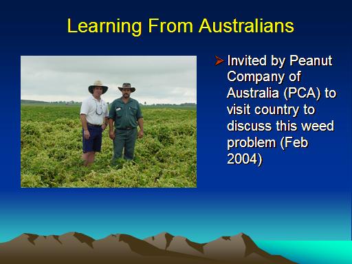 Learning From Australians<BR>Invited by Peanut Company of Australia (PCA) to visit country to discuss this weed problem (Feb 2004)<BR>